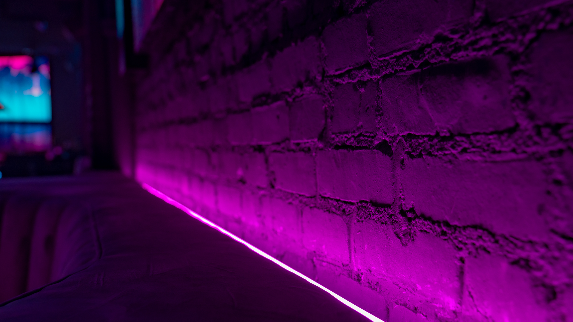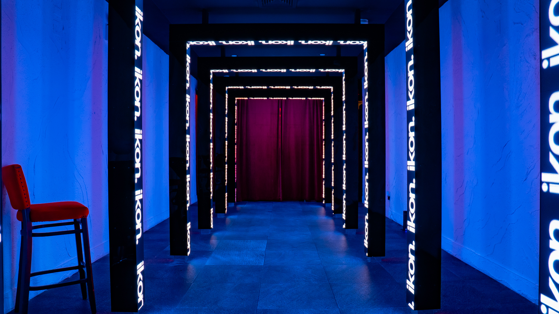 The entrance tunnel at IKON New York was designed to create an immediate sense of arrival and anticipation the moment guests step inside. Working within a long, narrow hallway, the goal was to transform a simple passageway into a memorable visual experience. Integrated lighting and digital display elements bring the space to life, using color and motion to set the tone before guests even reach the main room.