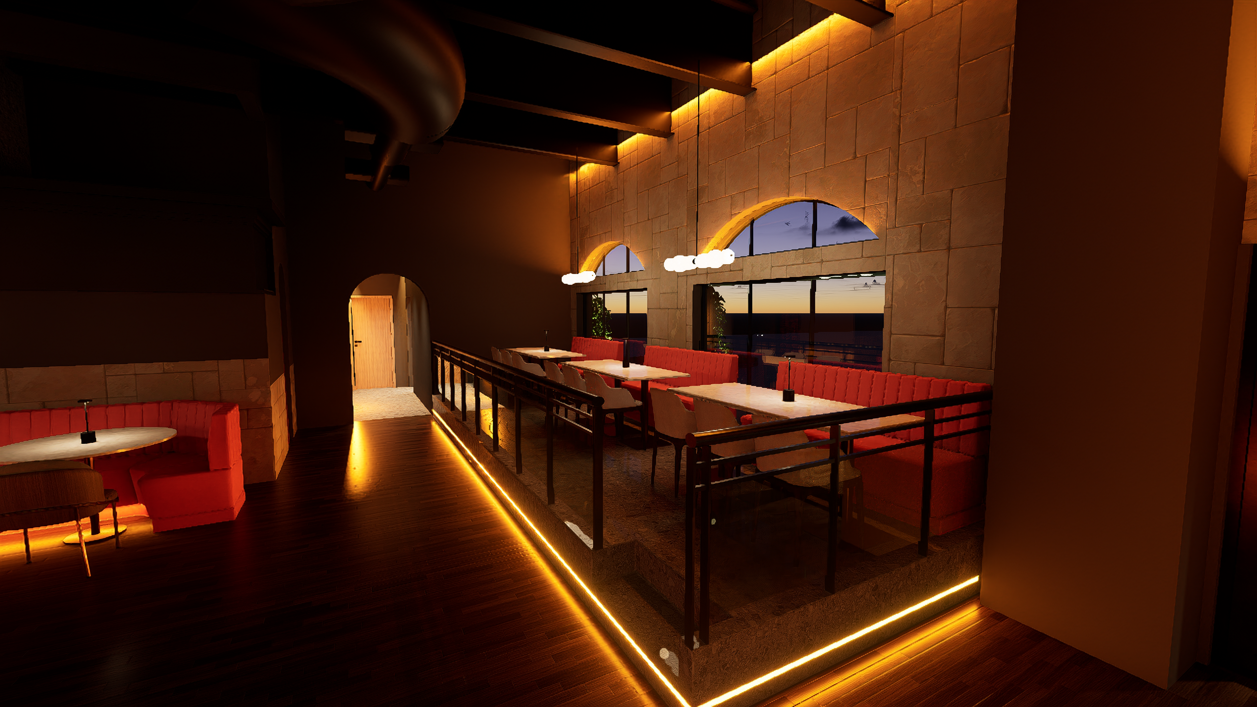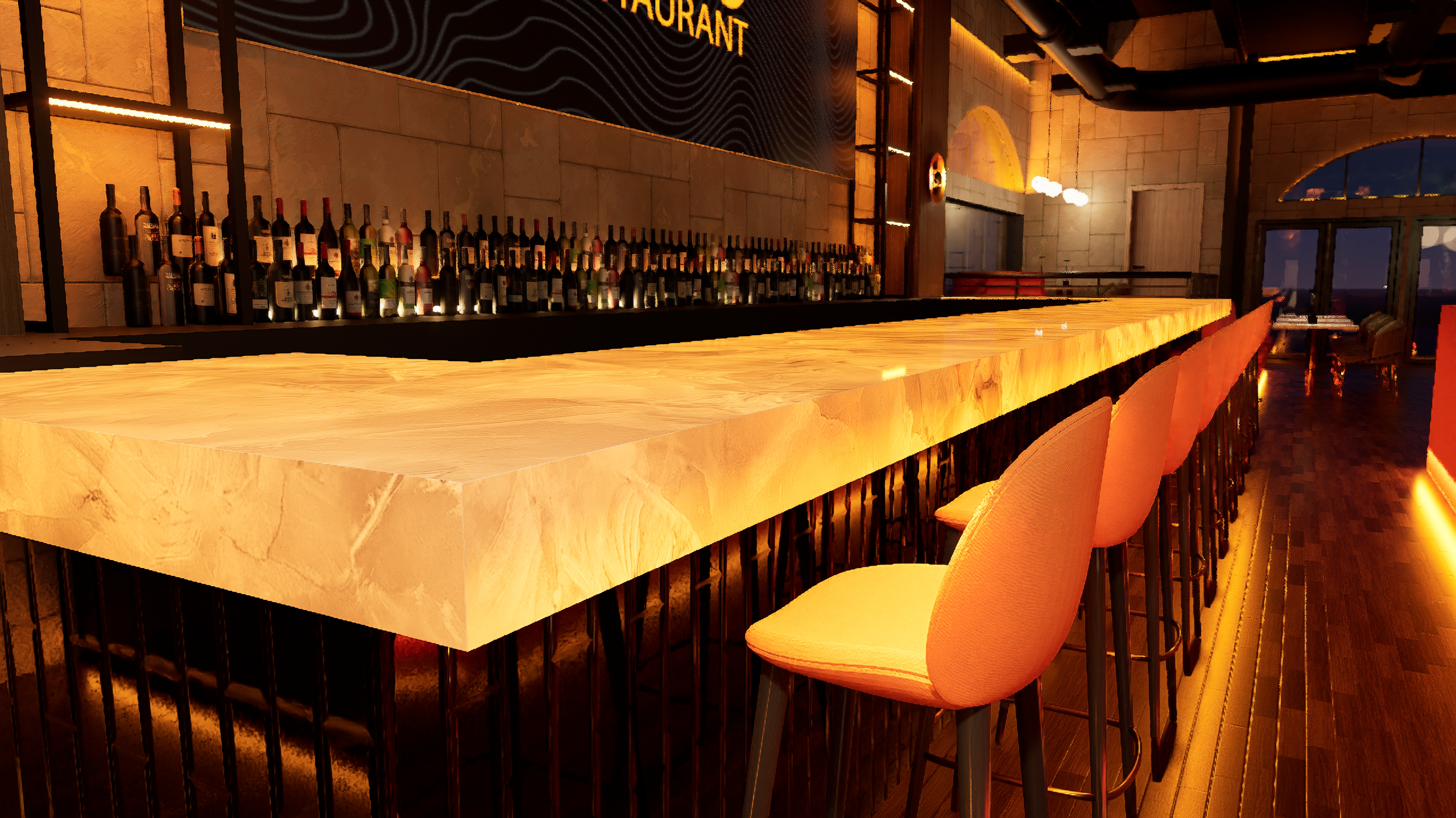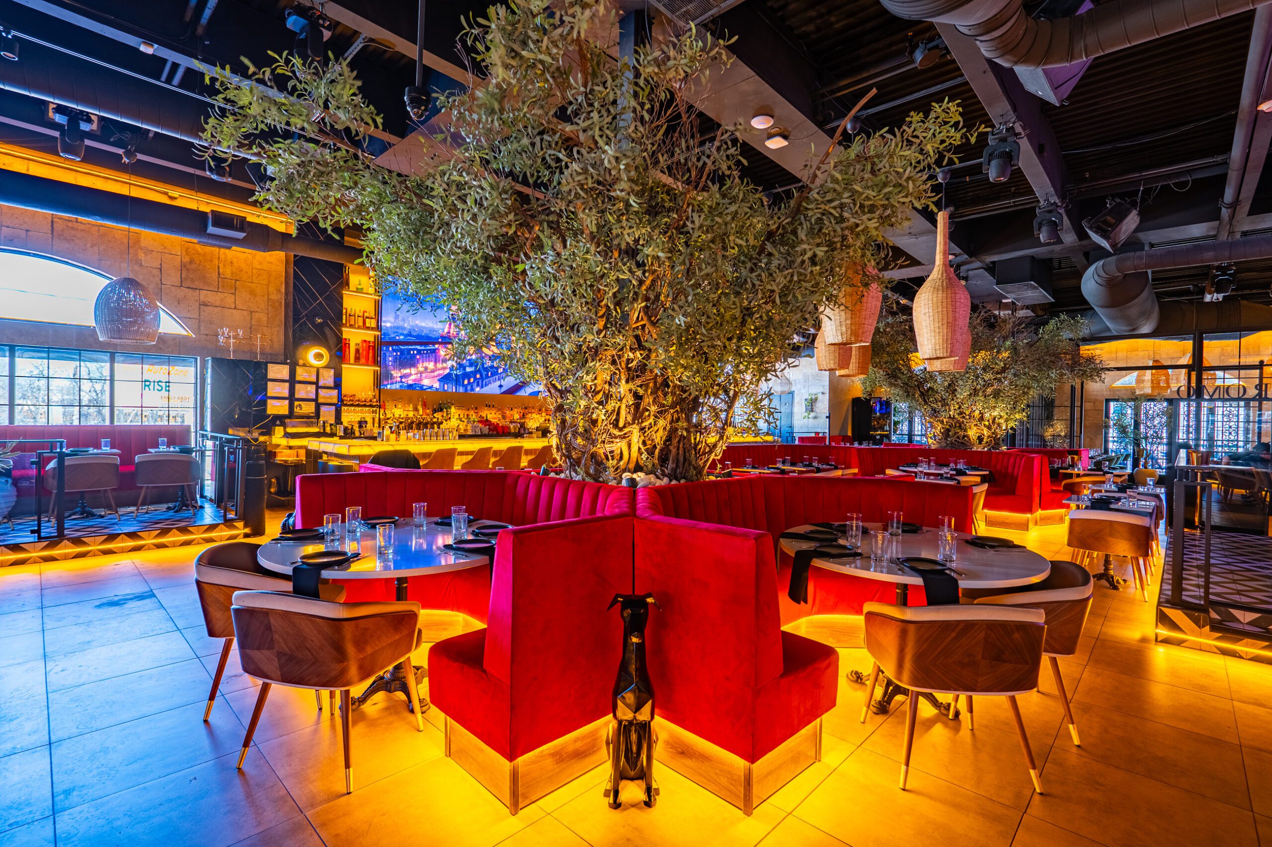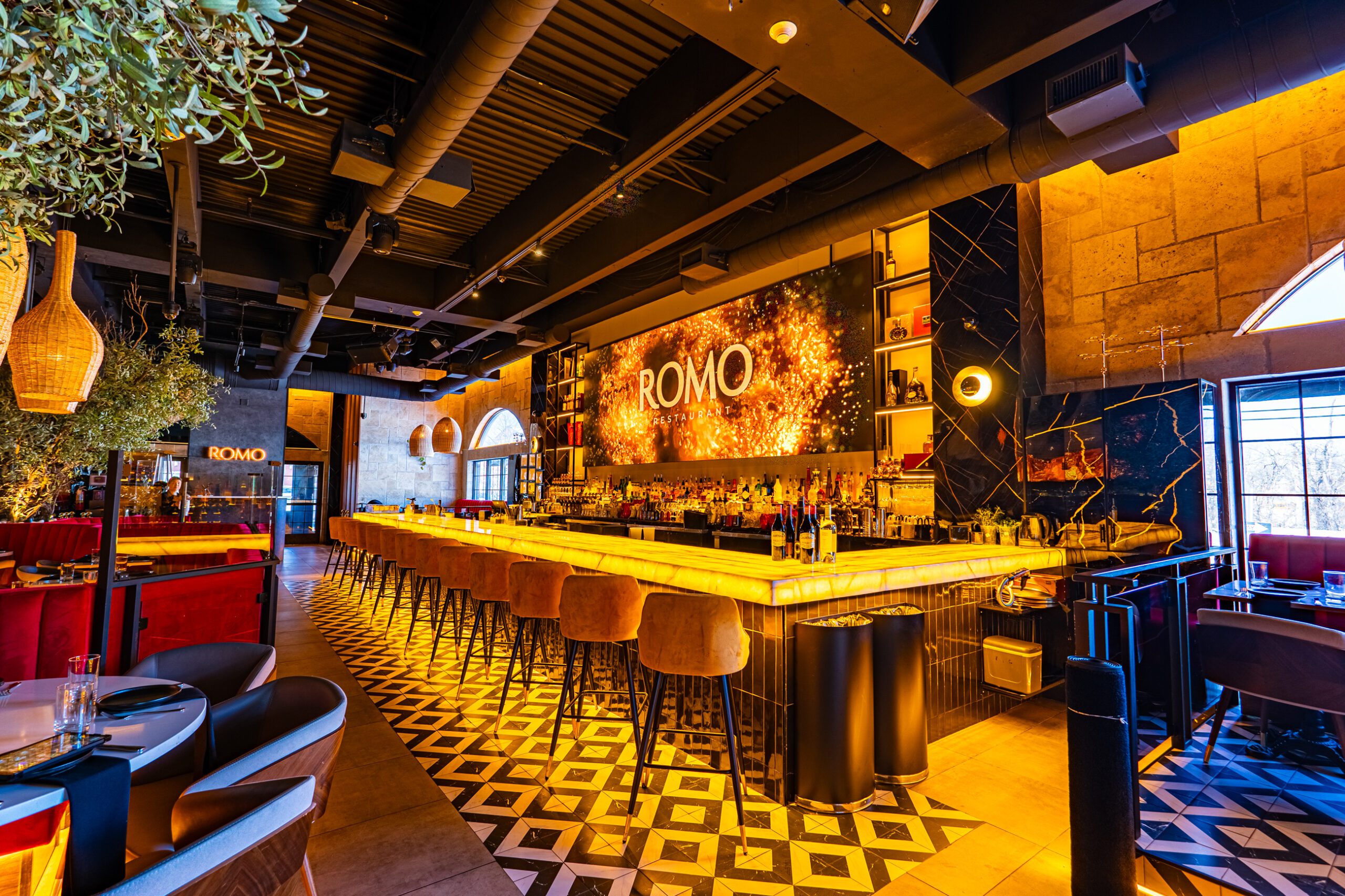 Romo Restaurant now stands as a vibrant hospitality destination that successfully blends refined dining with high-energy entertainment. The completed design delivers a visually striking environment where lighting, materials, and digital displays work together to create a cohesive and memorable guest experience. From the illuminated bar centerpiece to the layered lighting throughout the space, every detail contributes to a setting that feels both sophisticated and exciting.